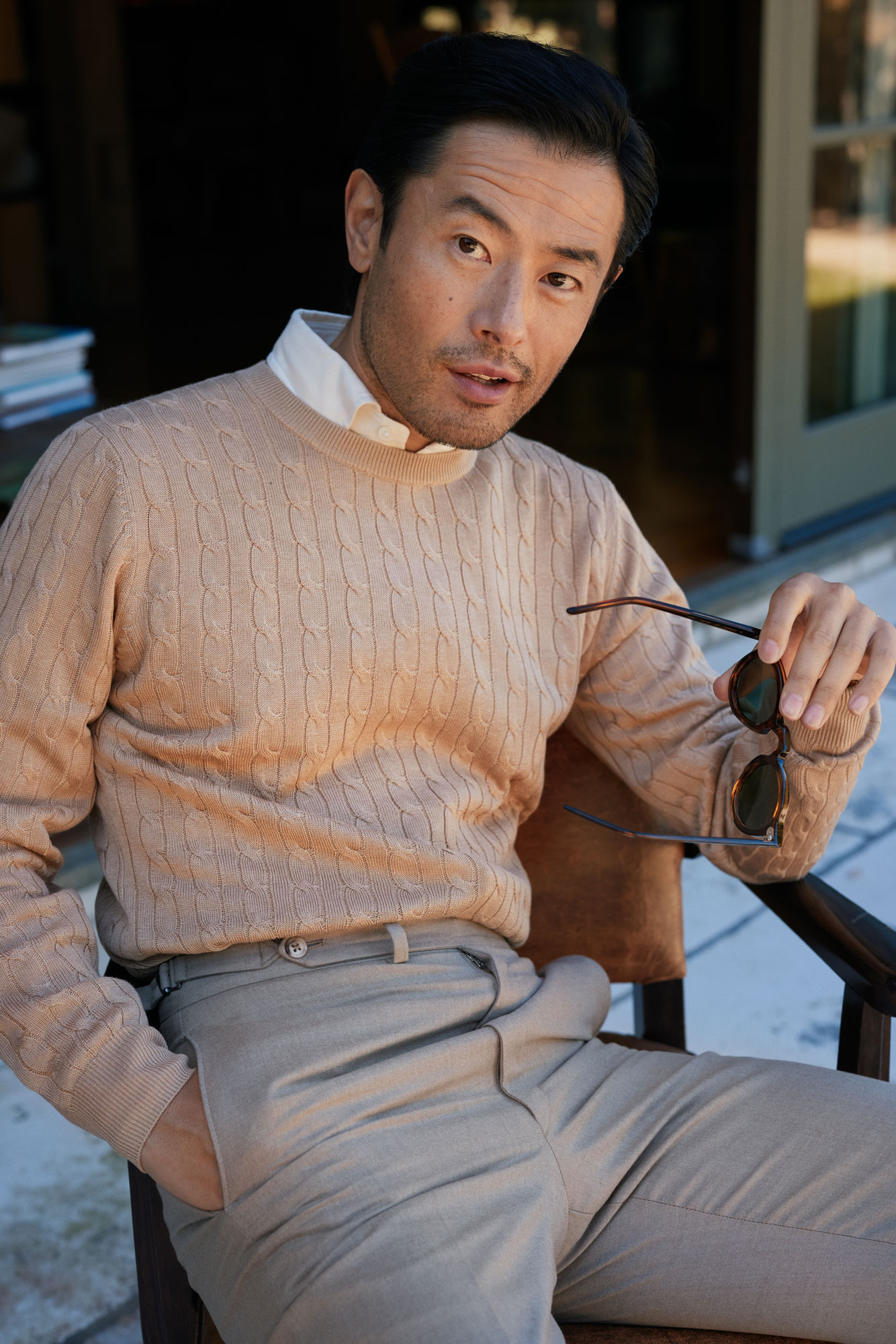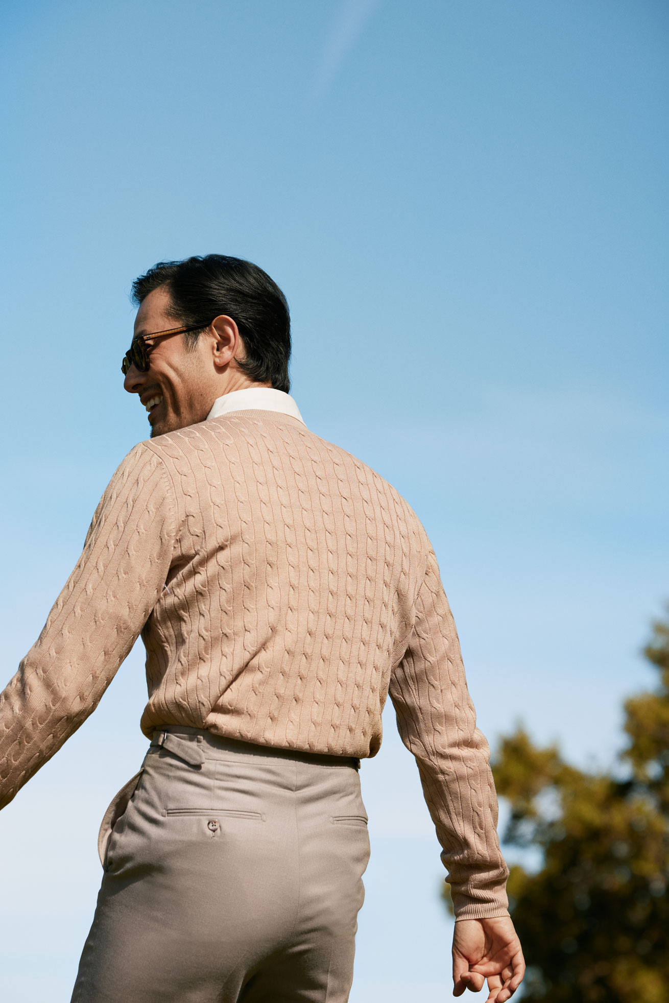 Camel Cable Knit Cashmere Sweater