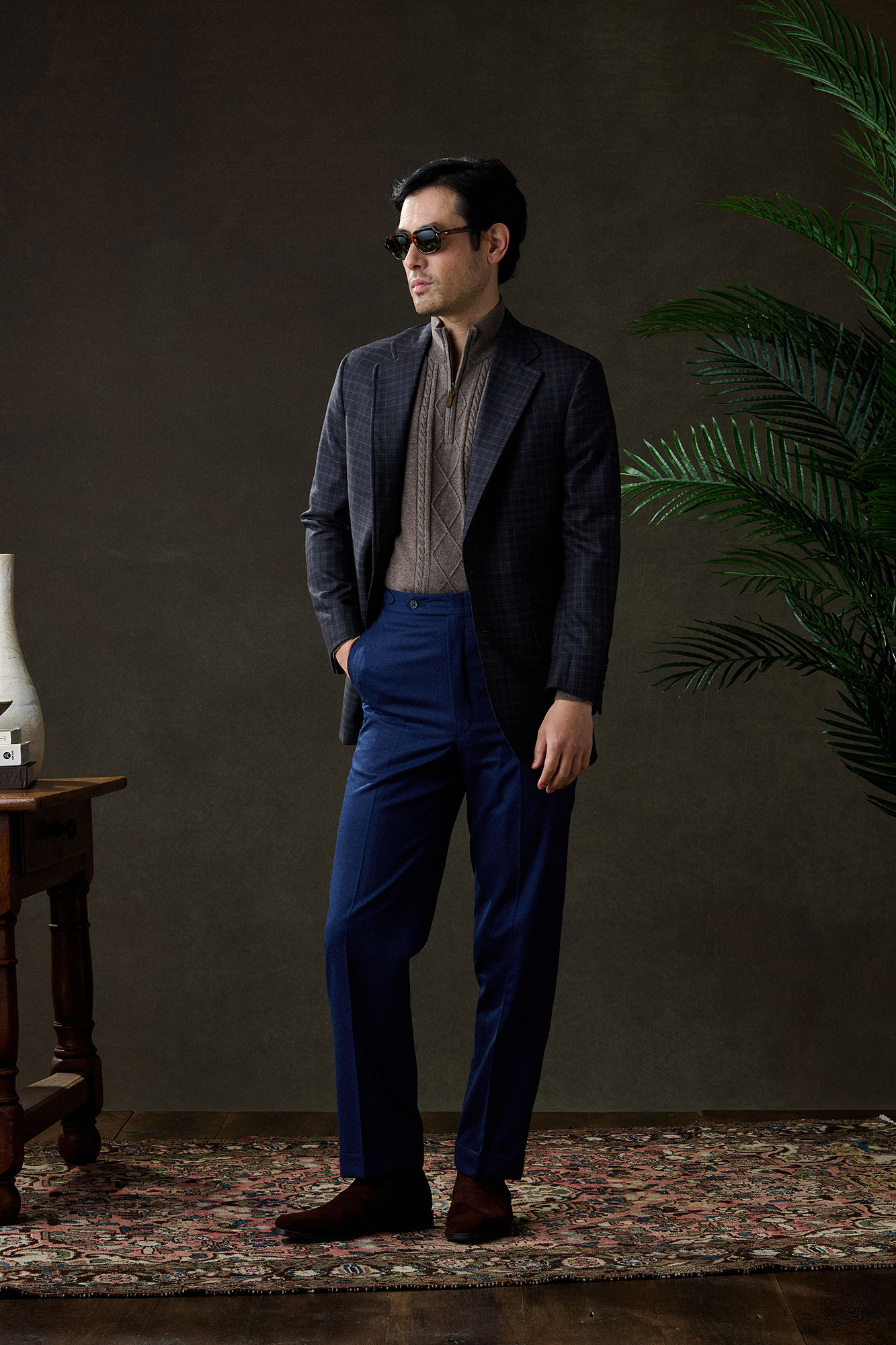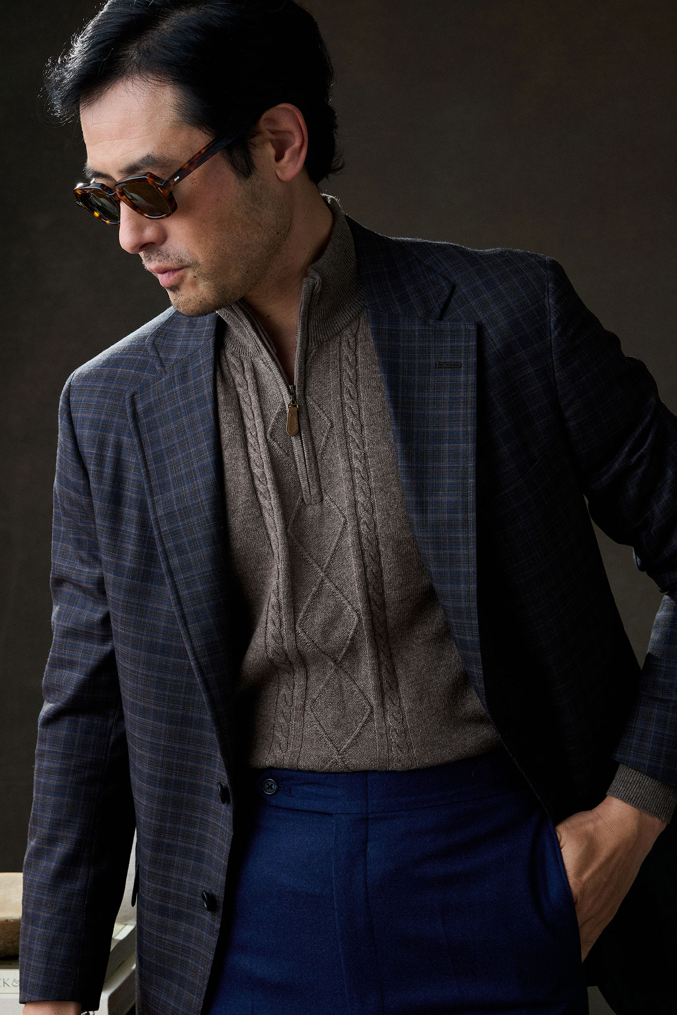 Custom Brown & Blue Plaid Sportcoat