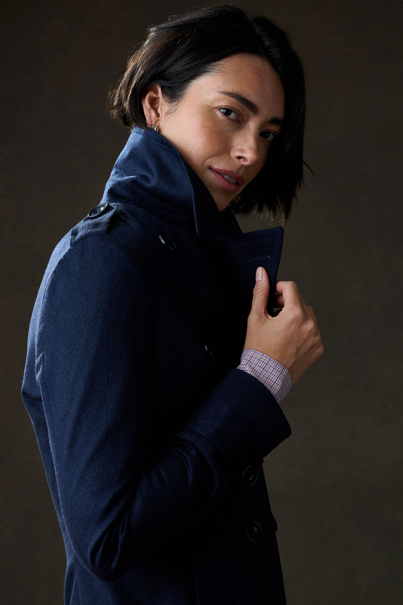 Navy Wool/Cashmere Peacoat With Tan Flannel Trouser