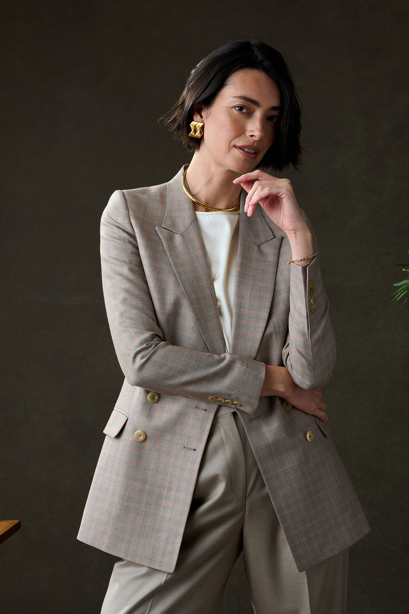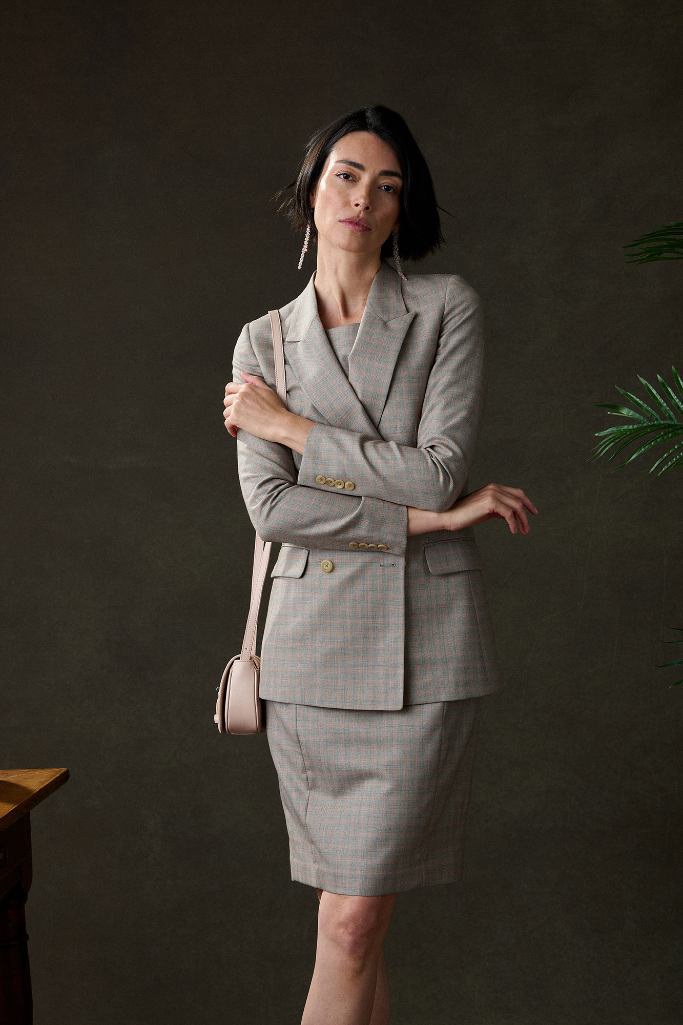 Tan & Orange Dress With Blazer