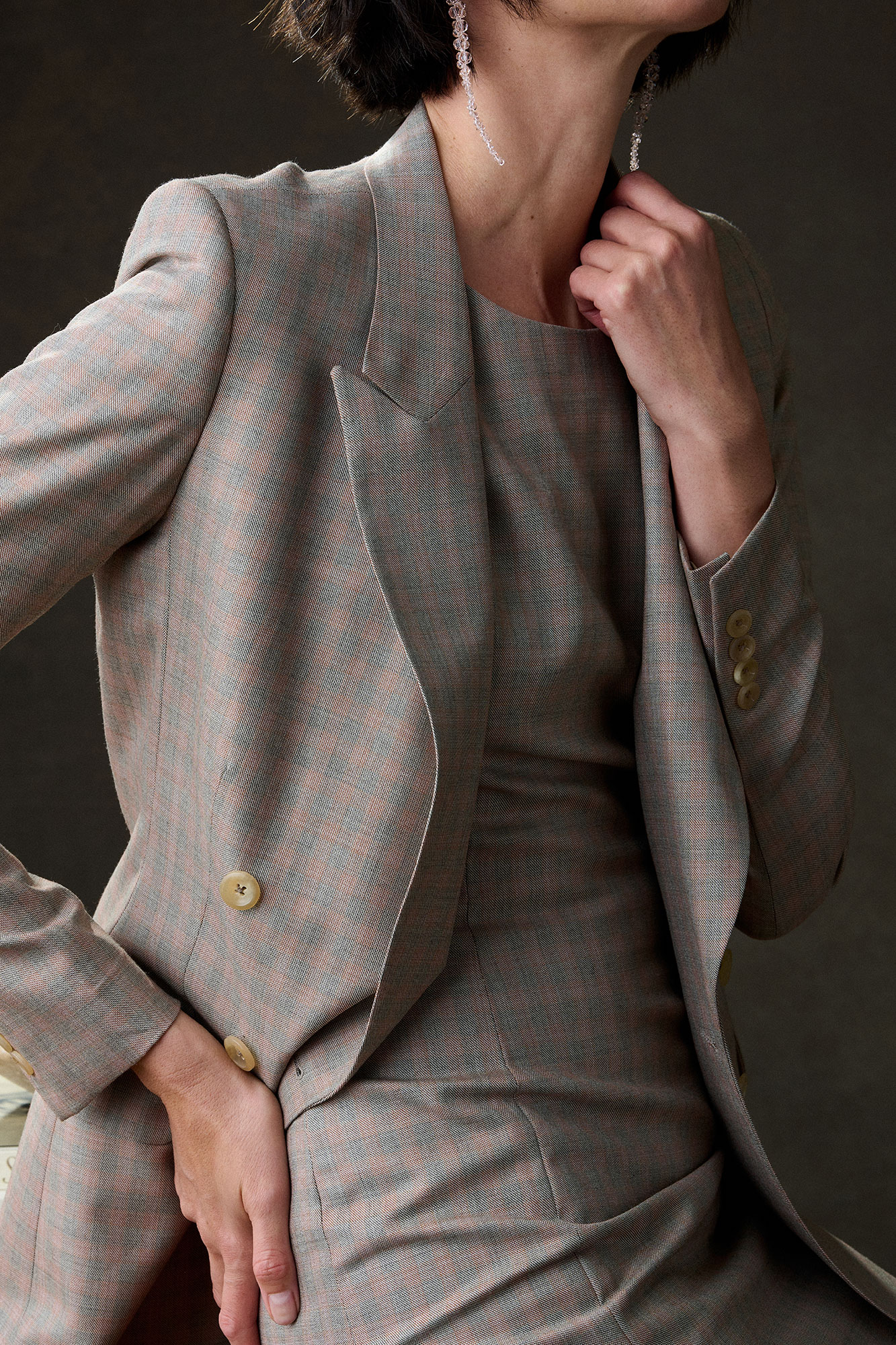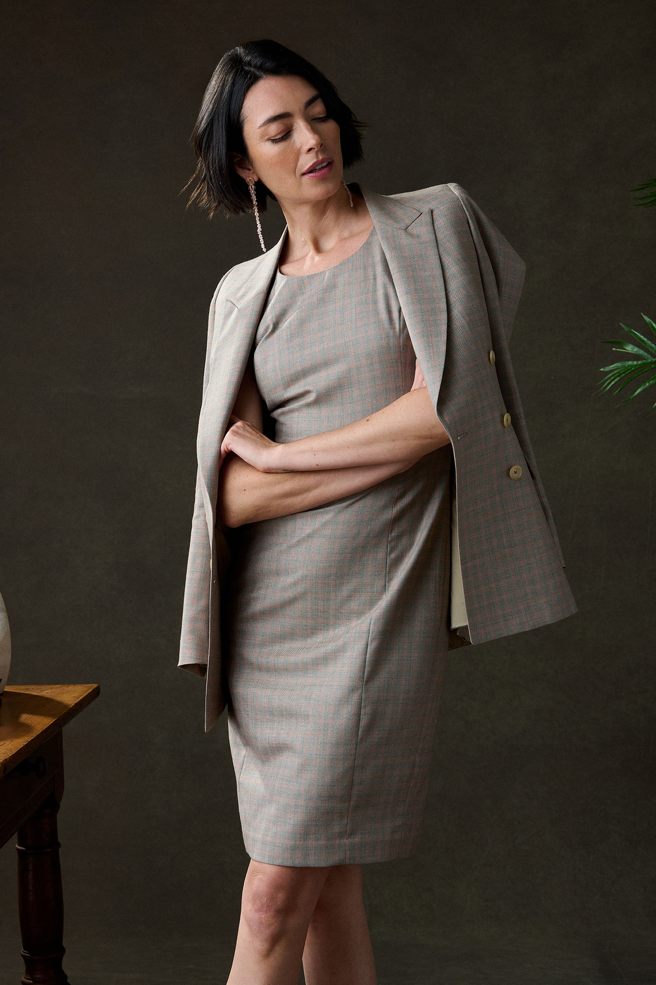Custom Tan & Orange Dress With Blazer