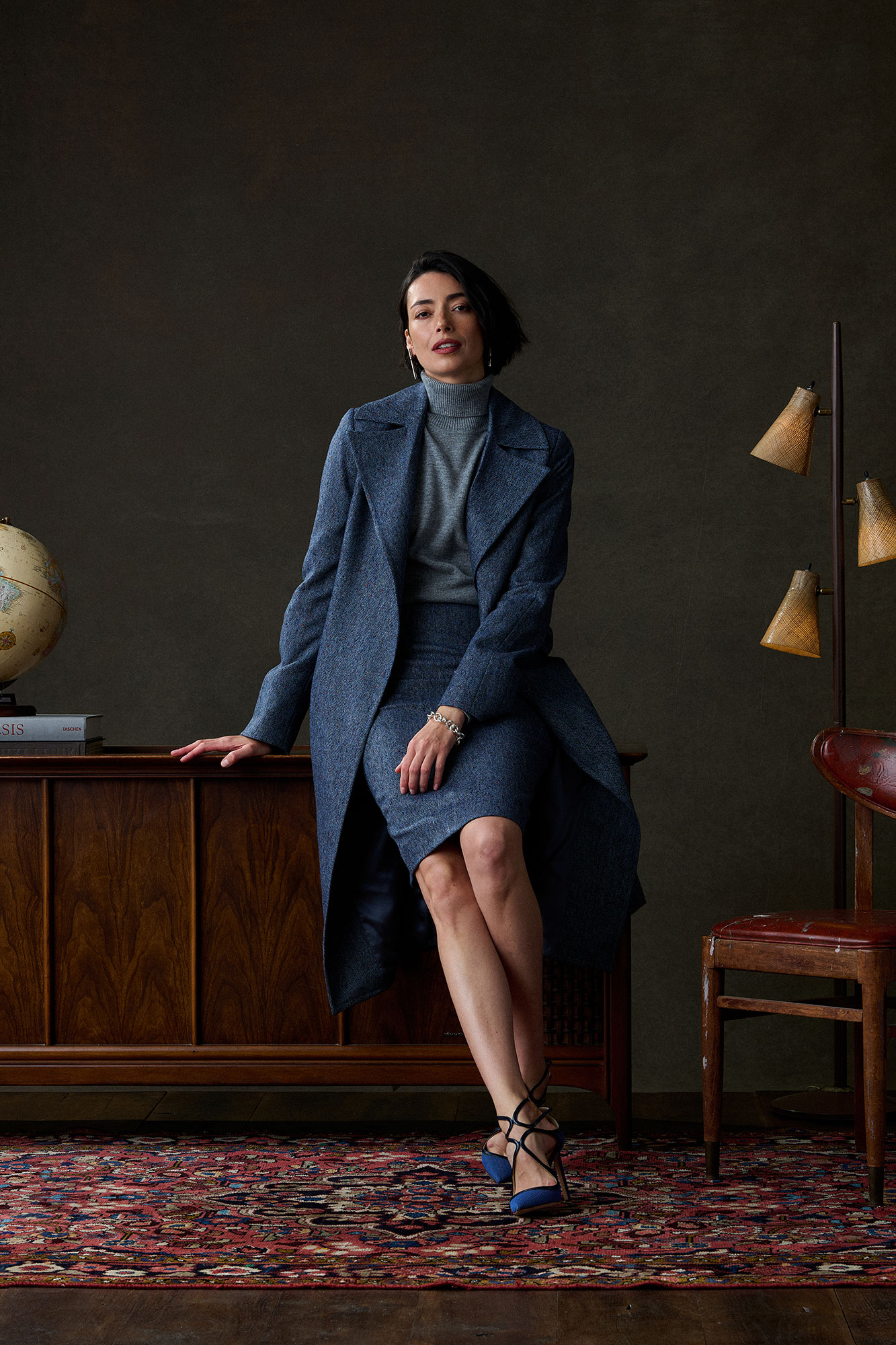 Custom Blue Donegal Top Coat & Skirt - Holland & Sherry