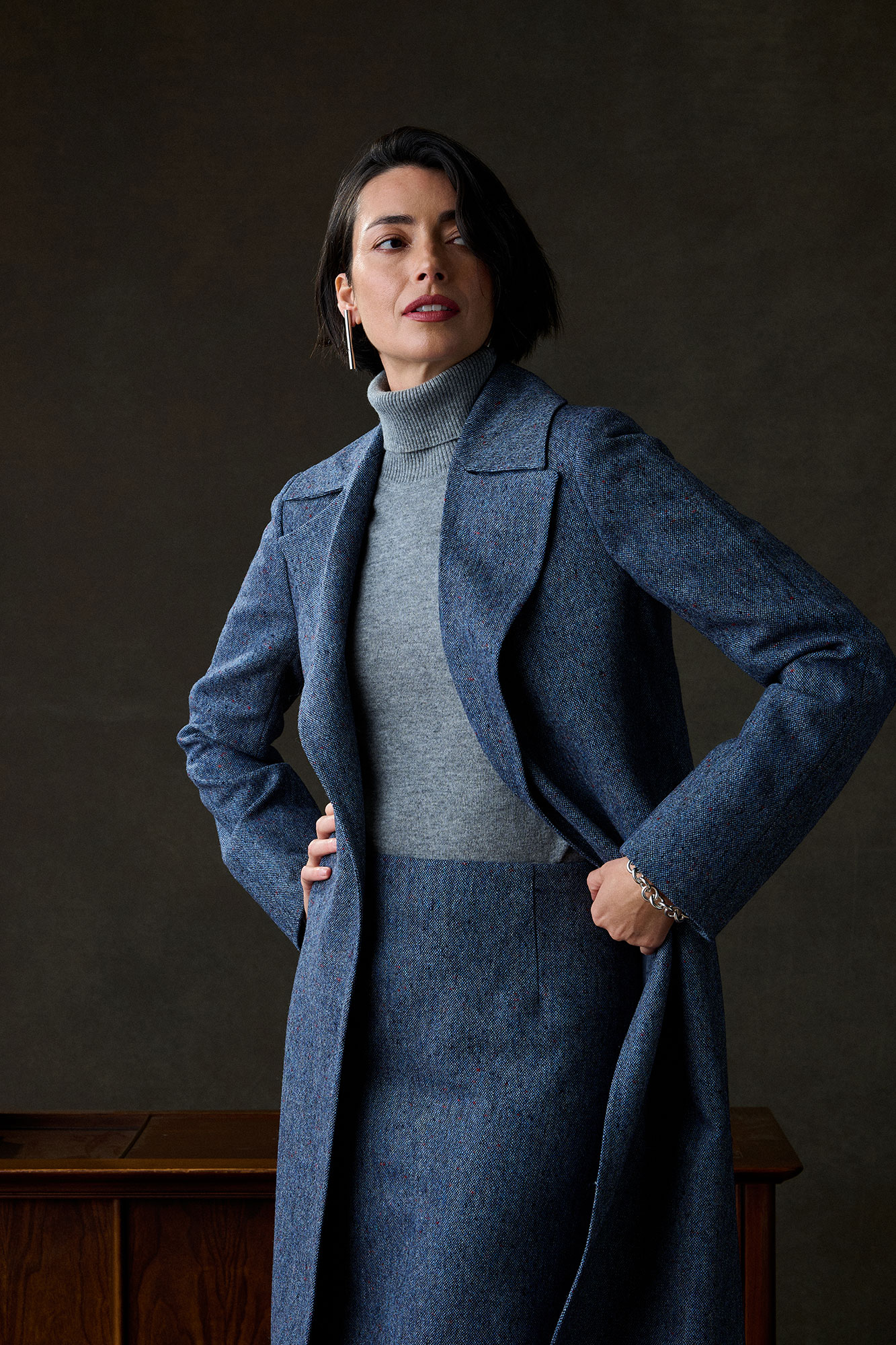 Blue Donegal Top Coat & Skirt - Holland & Sherry