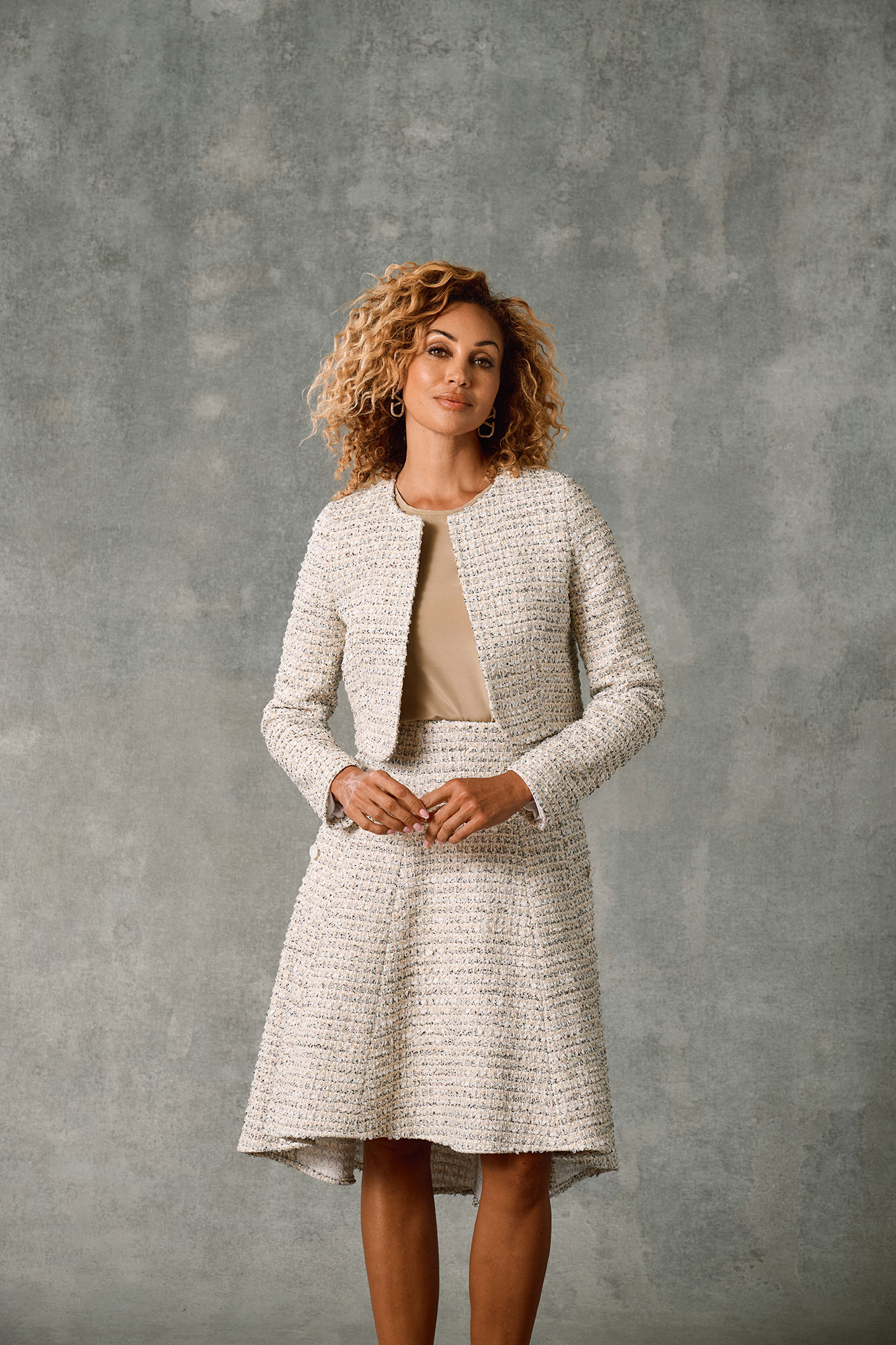 White Fancy Tweed Skirt - Holland & Sherry