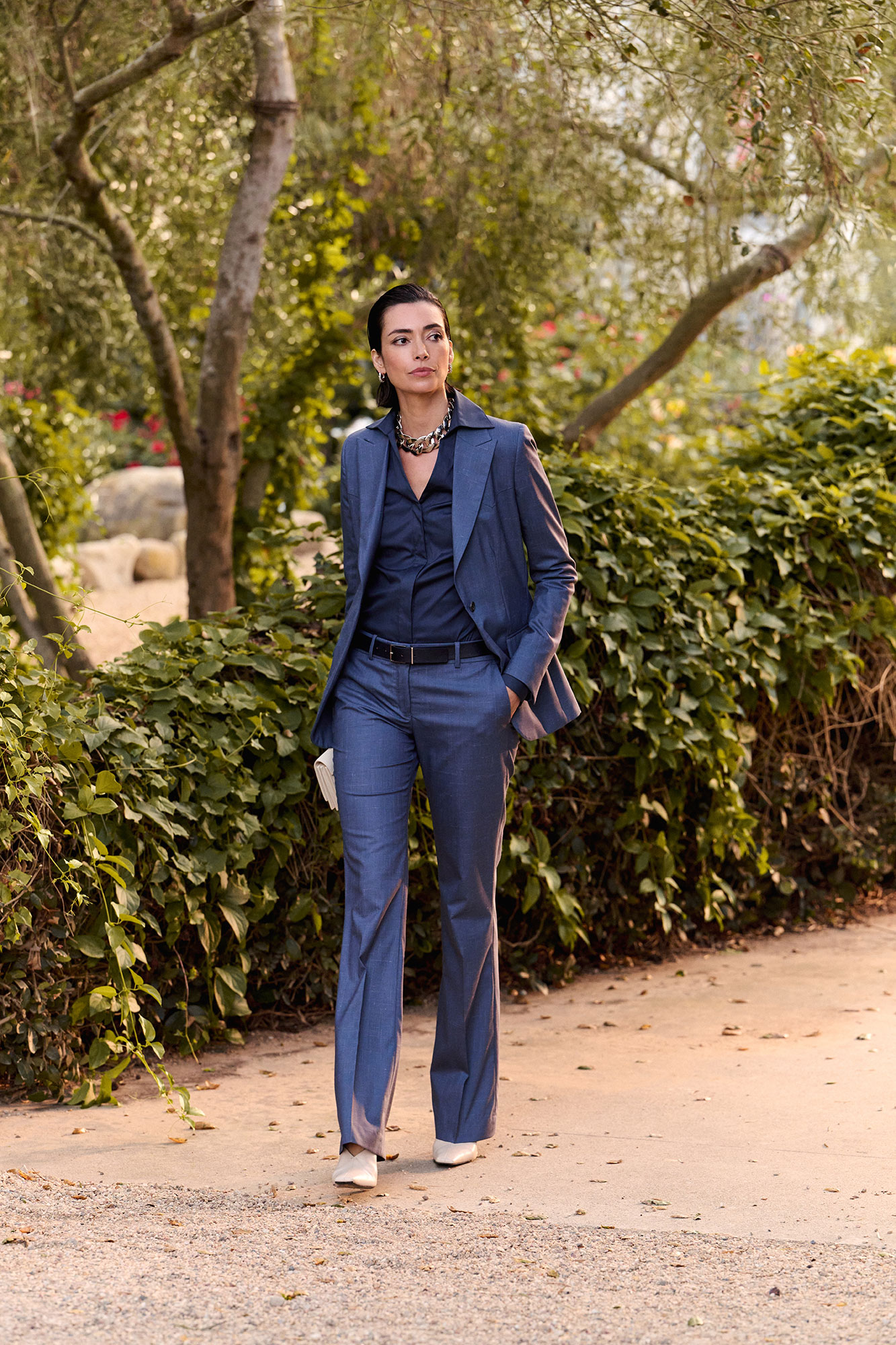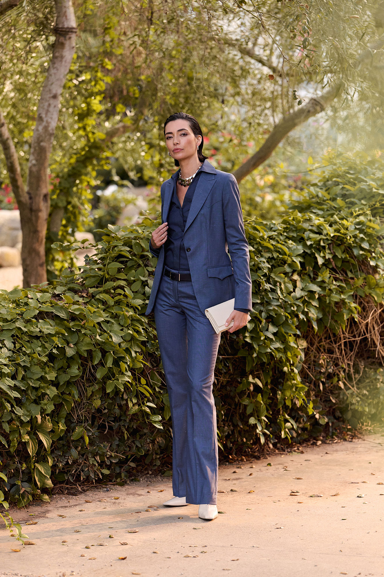 The Navy Maddie shirt offers a tailored yet feminine fit with a one-button square cuff and clean lines. Crafted from crisp cotton poplin, it combines structure and elegance for a polished, versatile look, perfect on its own or layered under a jacket.